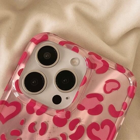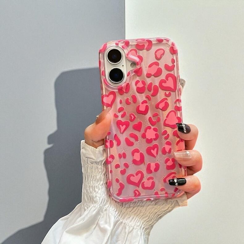 オーロラベースにピンクのレオパード柄をあしらった、存在感抜群のiPhoneケース。