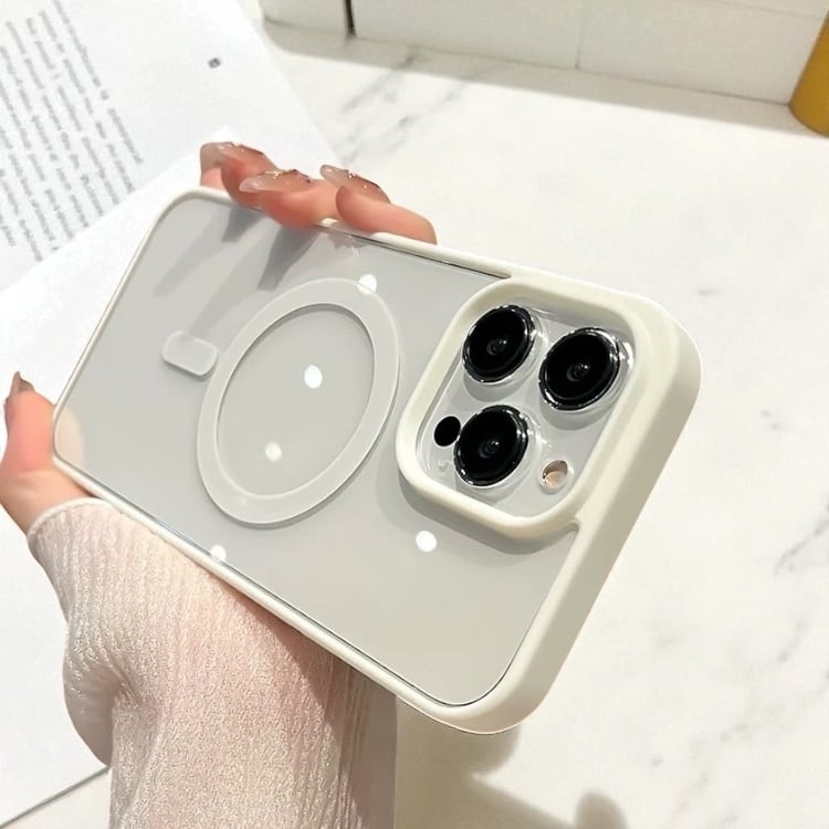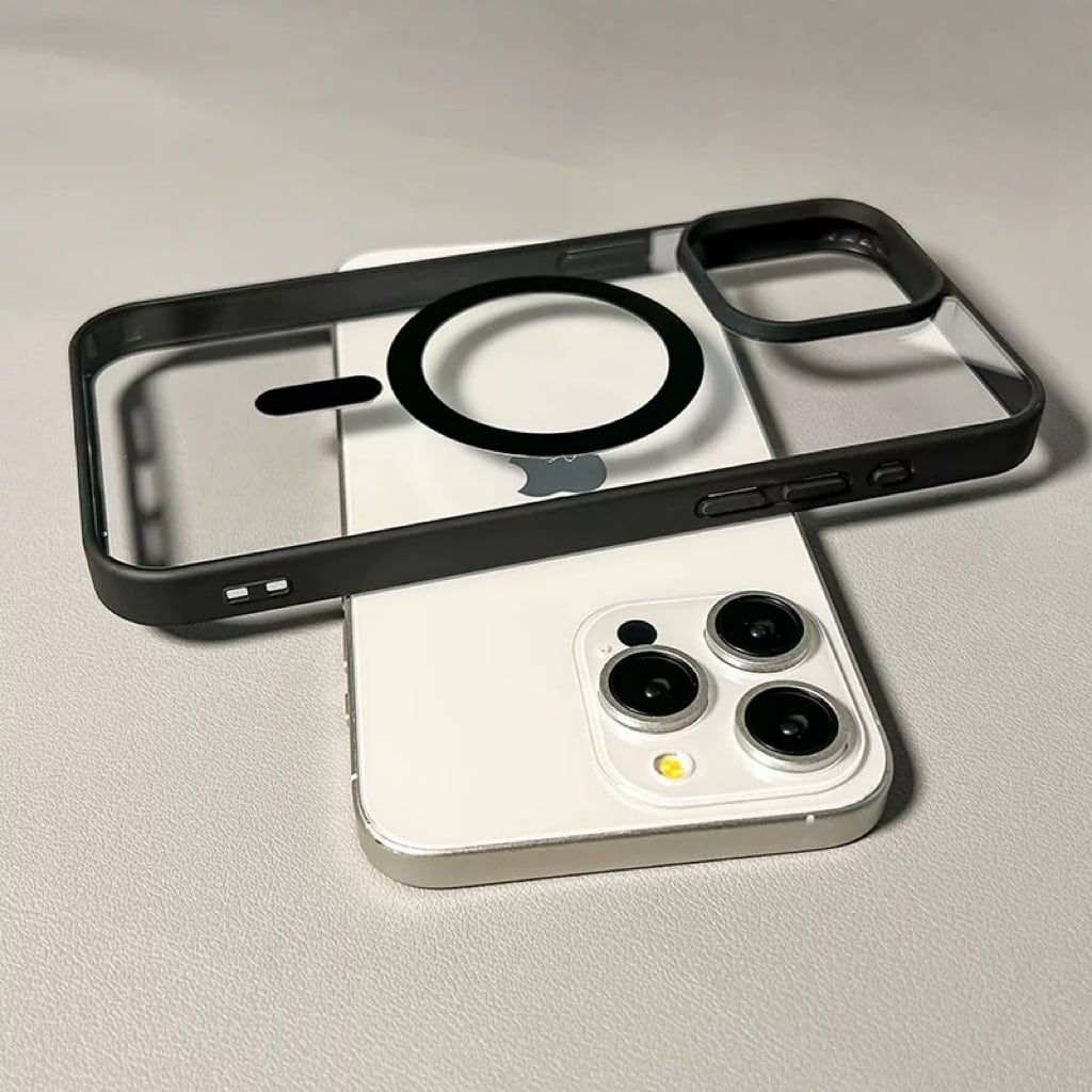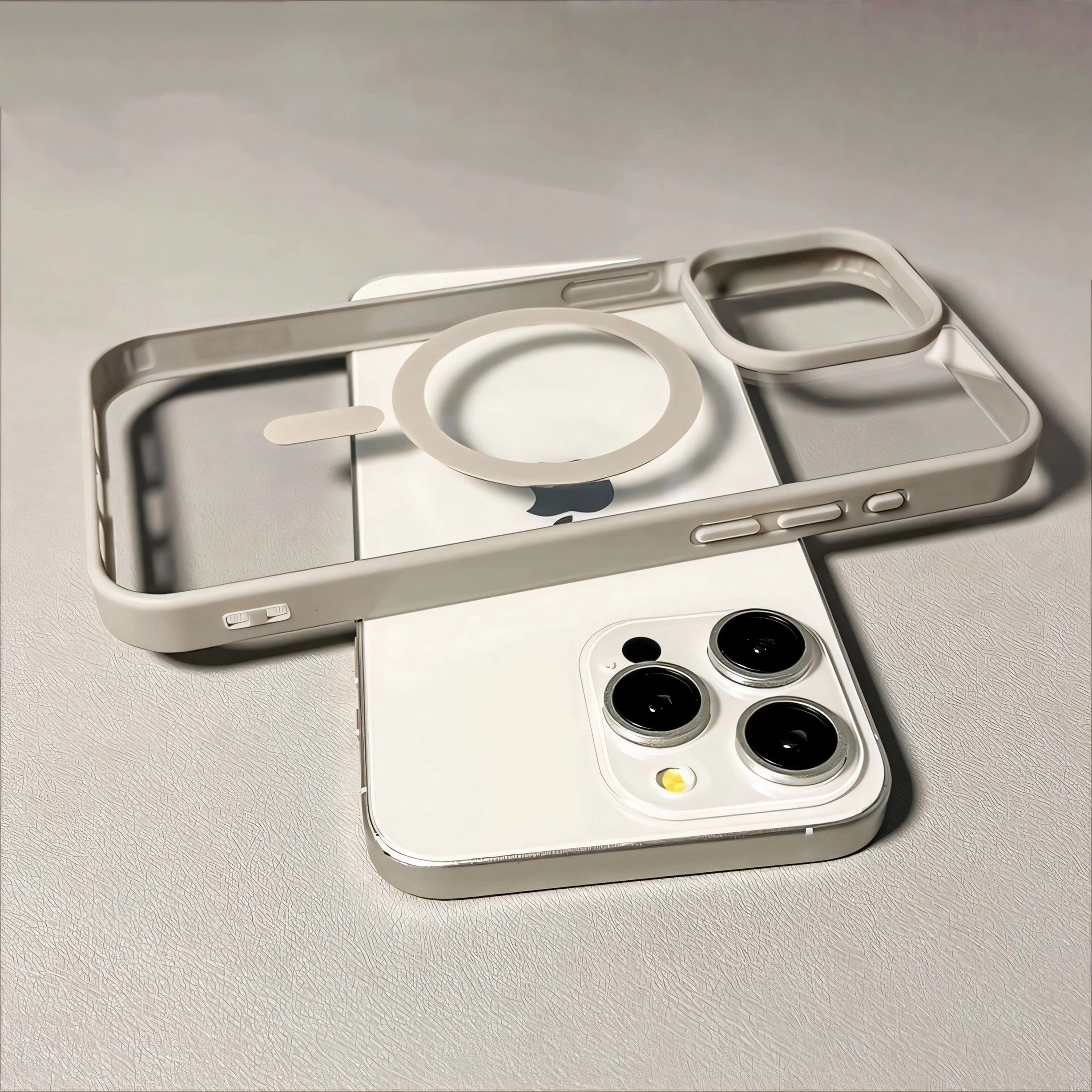 ホワイト・ピンク・ブラック・グレーの4色から選べるフレームと、クリア素材を組み合わせたiPhoneケース。