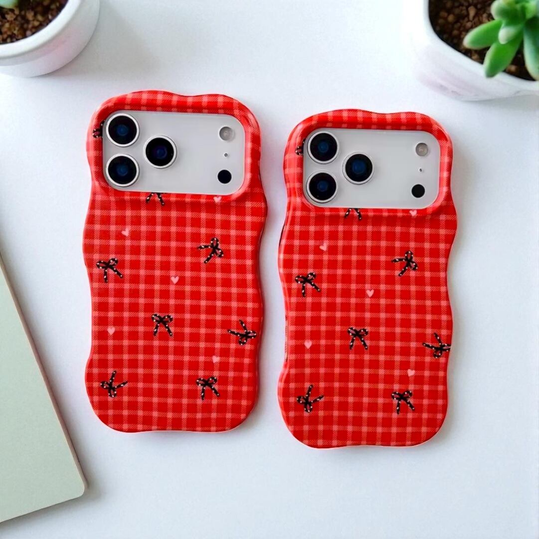 〜赤チェック×リボンで魅せる、可愛さ満点のiPhoneケース〜