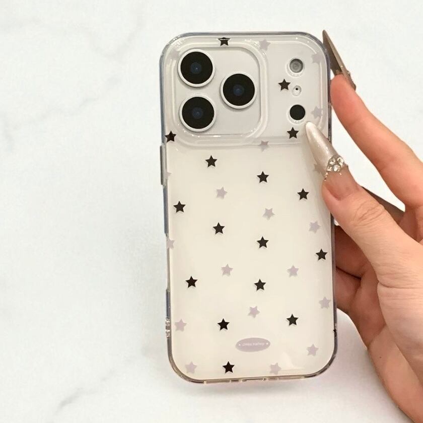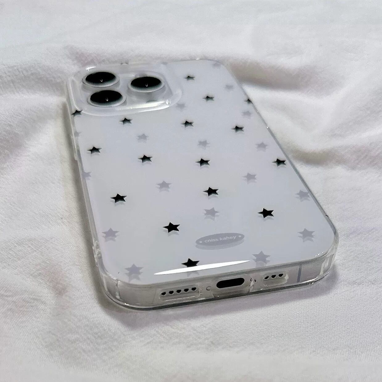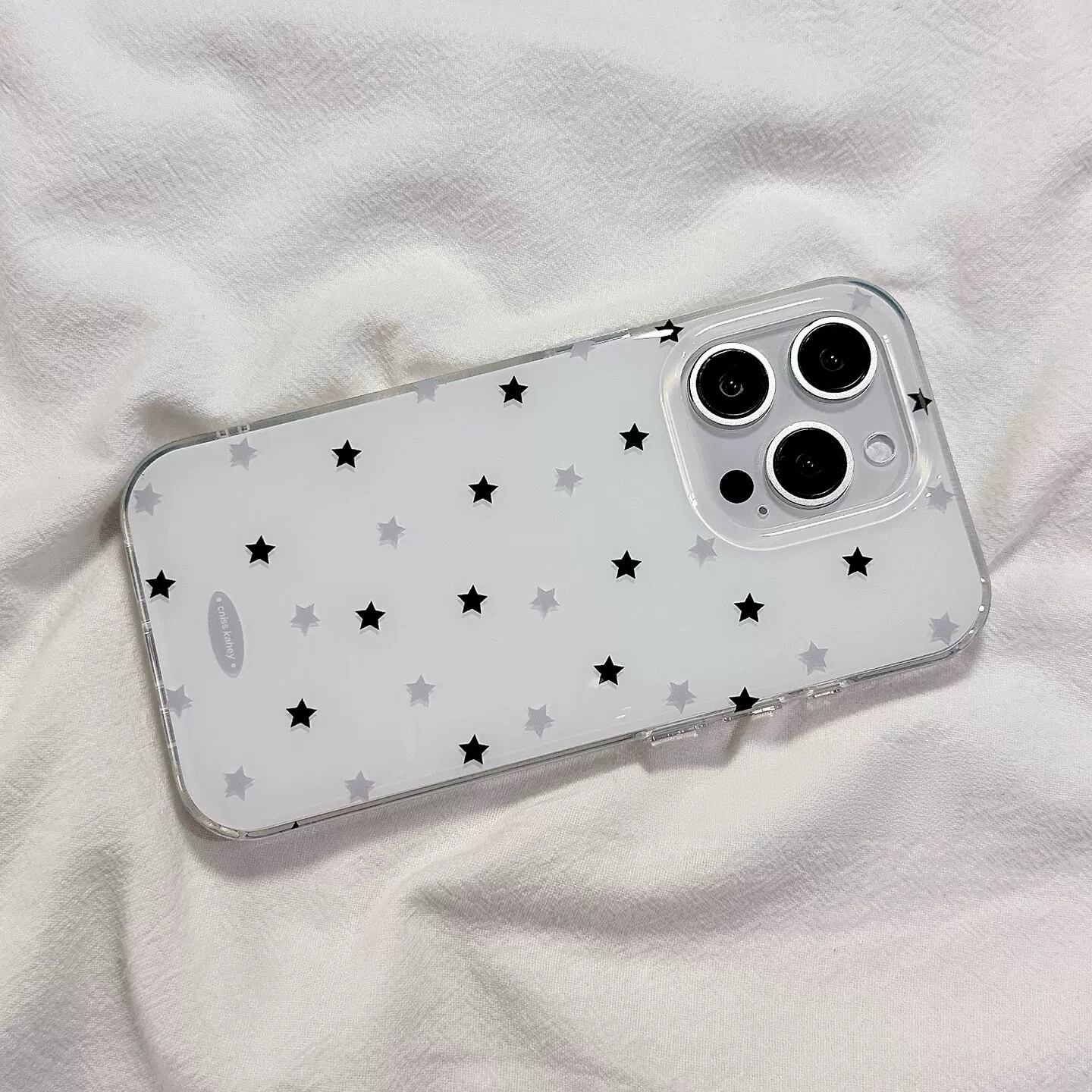 ホワイト モノトーン スター iPhoneケース | スマホケース iPhone ケース アイフォンケース | 機種 iPhone 14 15 16 17 Pro Max シリーズ