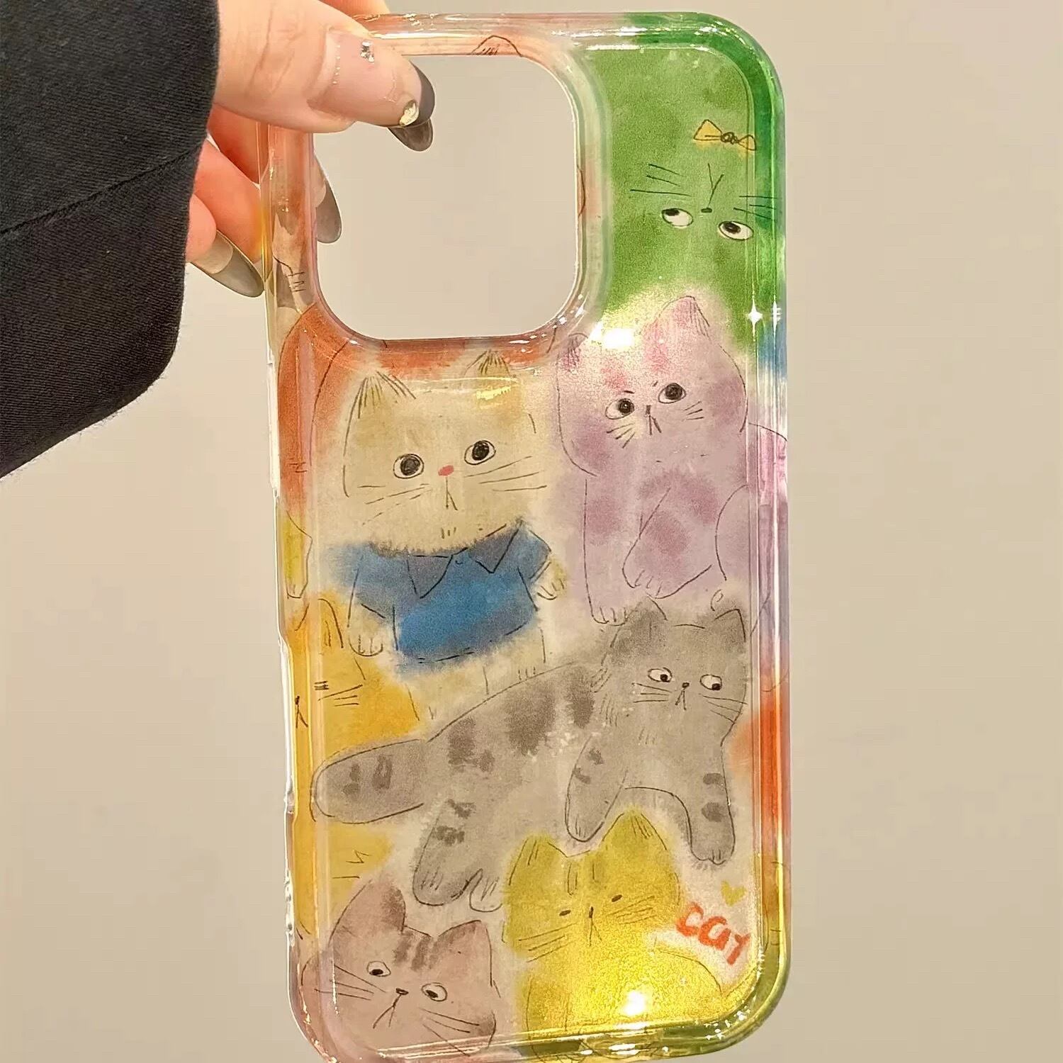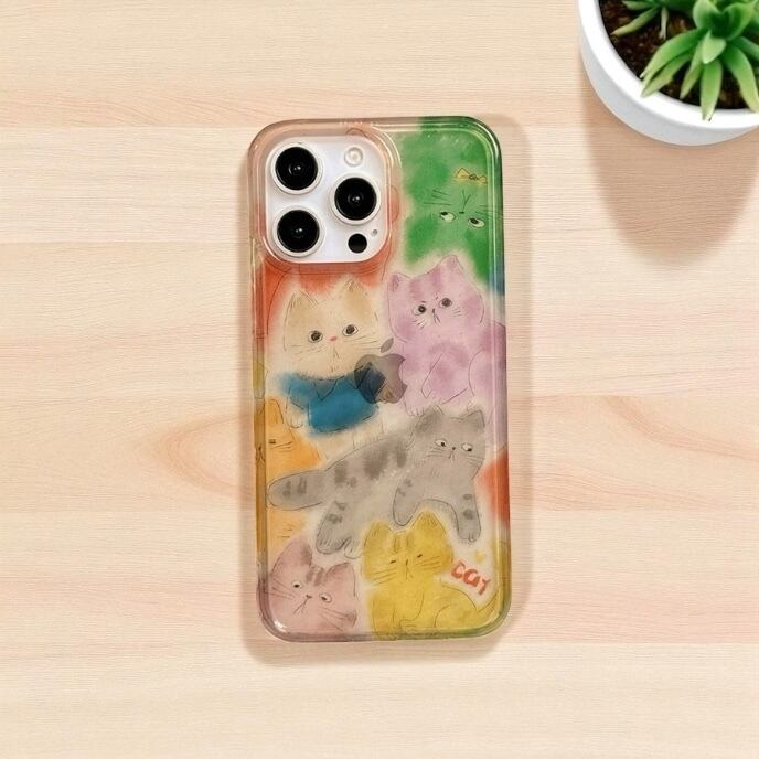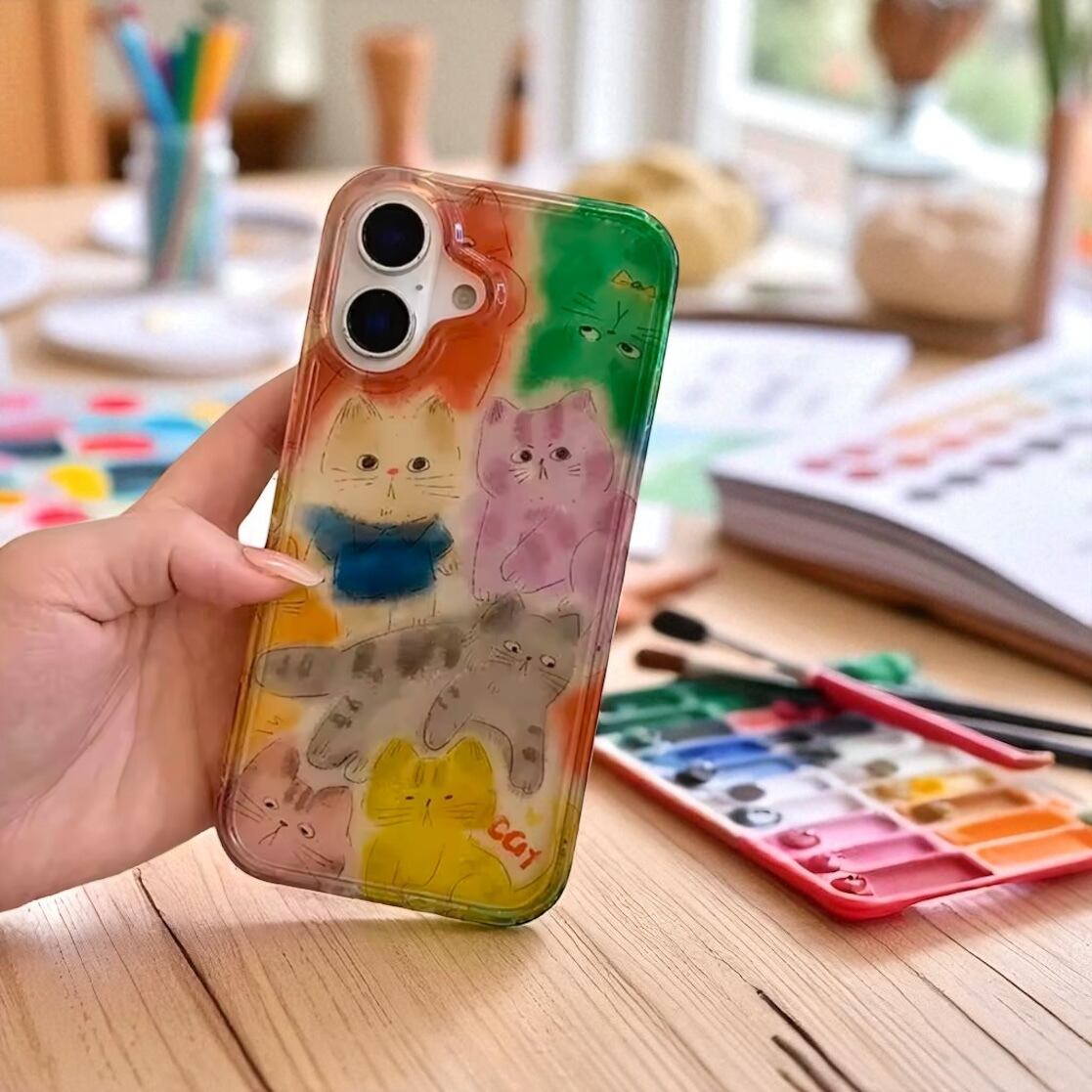カラフル アート 猫 キャット iPhoneケース | スマホケース iPhone ケース アイフォンケース | 機種 iPhone 14 15 16 17 Pro Max シリーズ