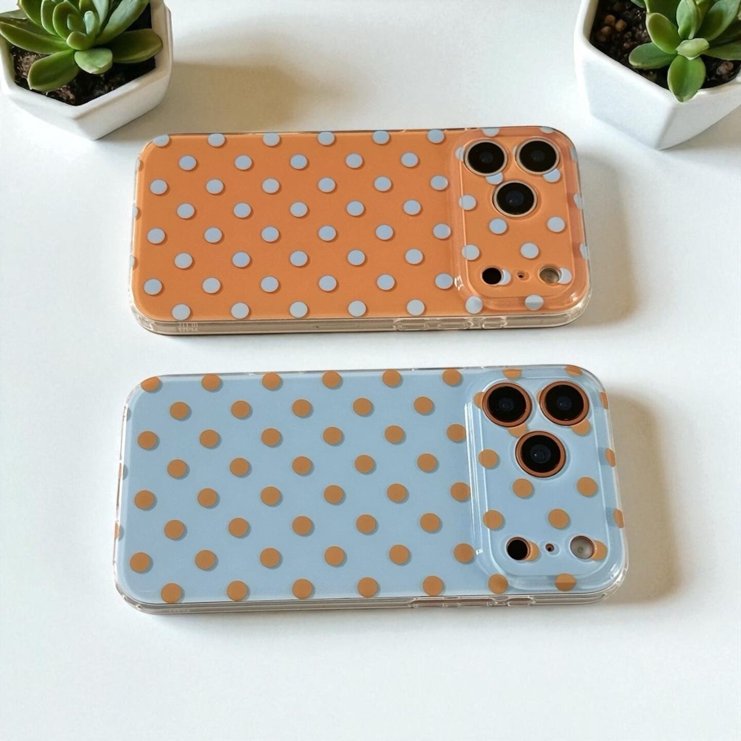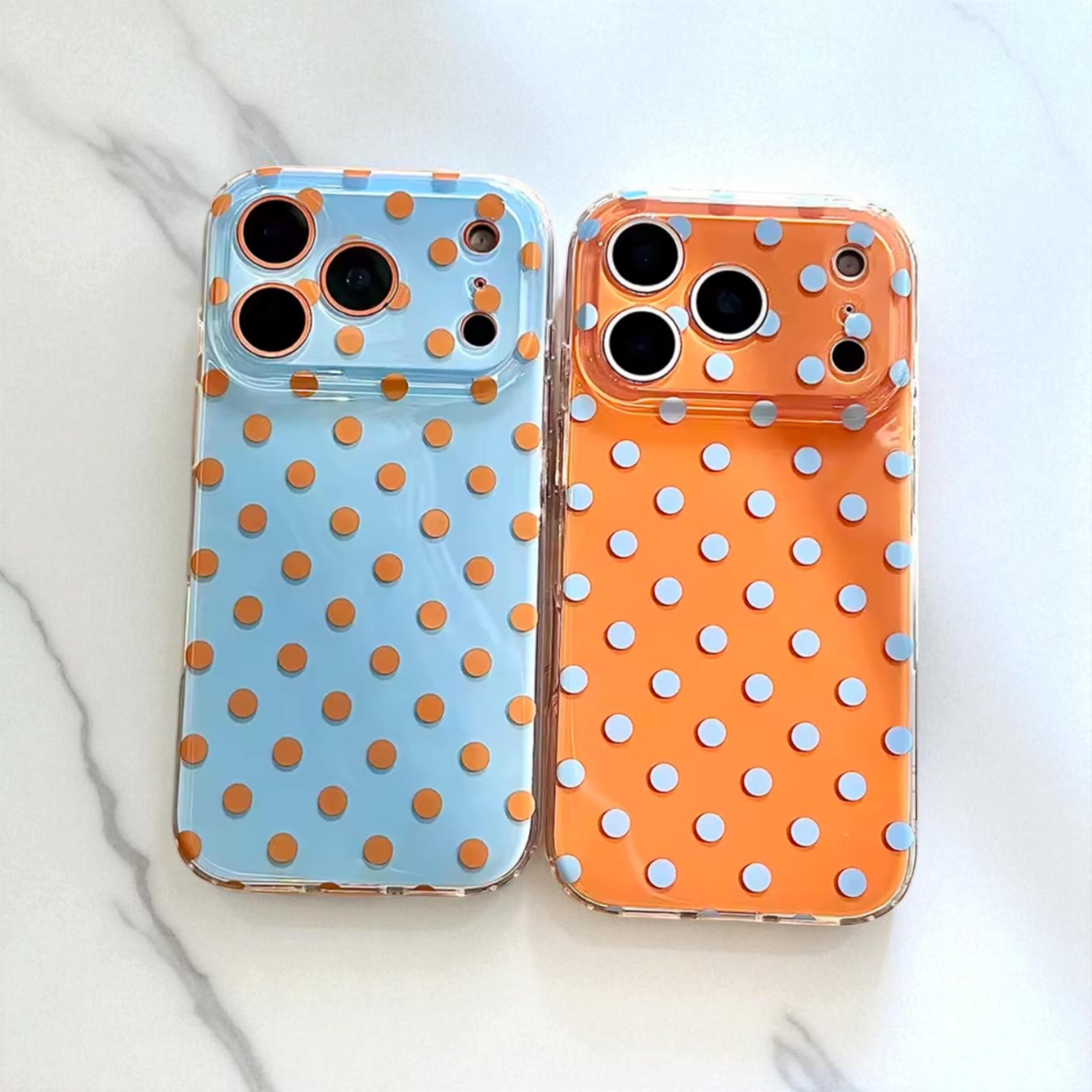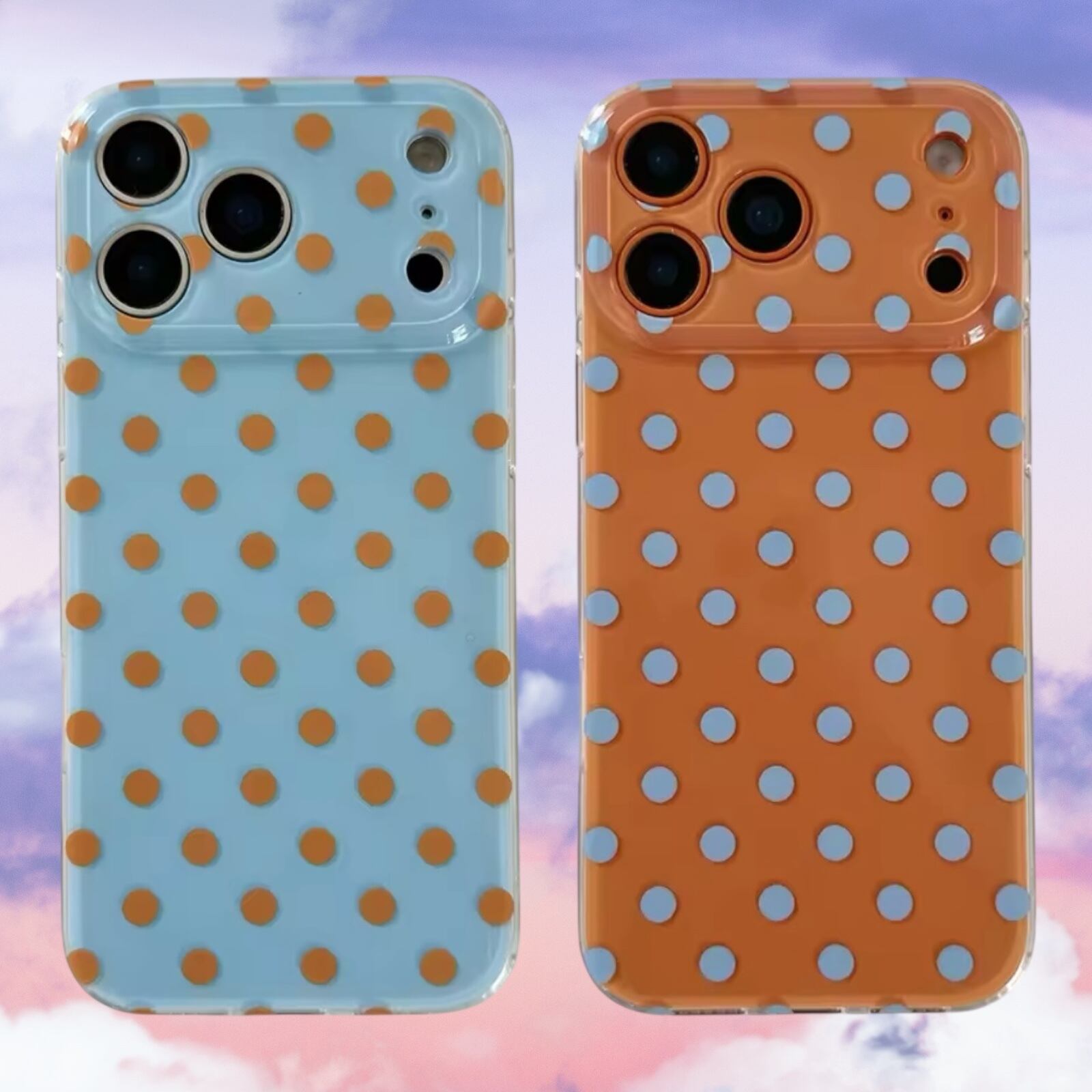 ブルー×オレンジ ドット柄 iPhoneケース (A/B) | スマホケース iPhone ケース アイフォンケース | 機種 iPhone 14 15 16 17 Pro Max シリーズ