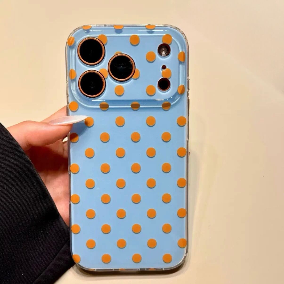 遊び心たっぷりの配色が目を引く、ドット柄iPhoneケース。