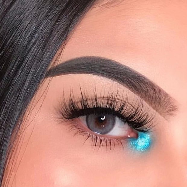 ④ つけまつげ接着剤を塗って、30秒程乾かした後装着する。