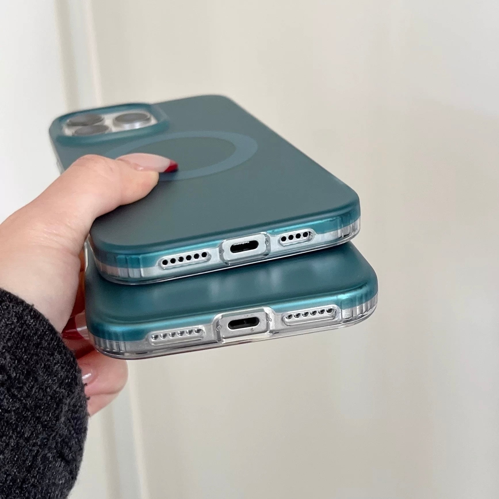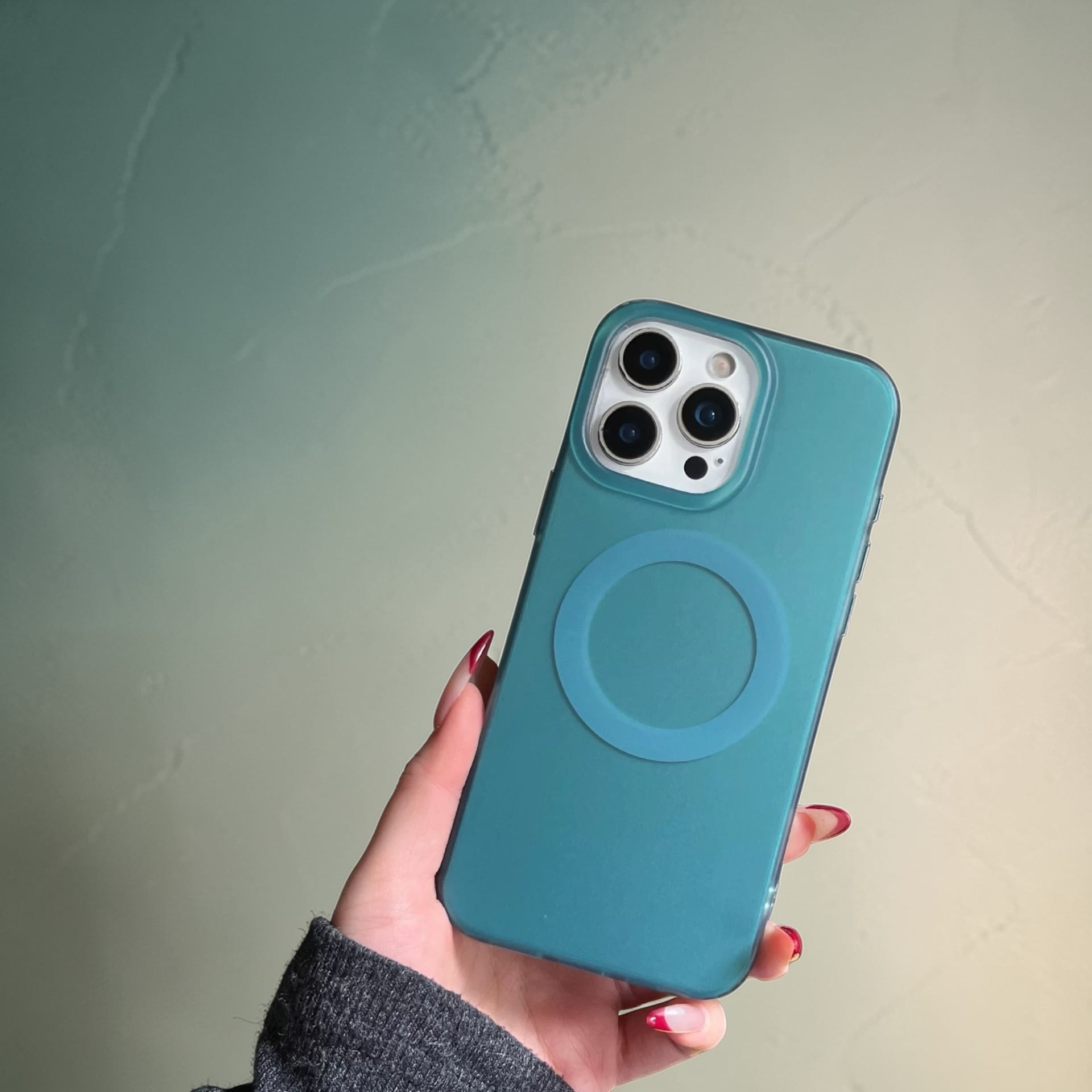 落ち着いたグリーンカラーとマットな質感が魅力のiPhoneケース。