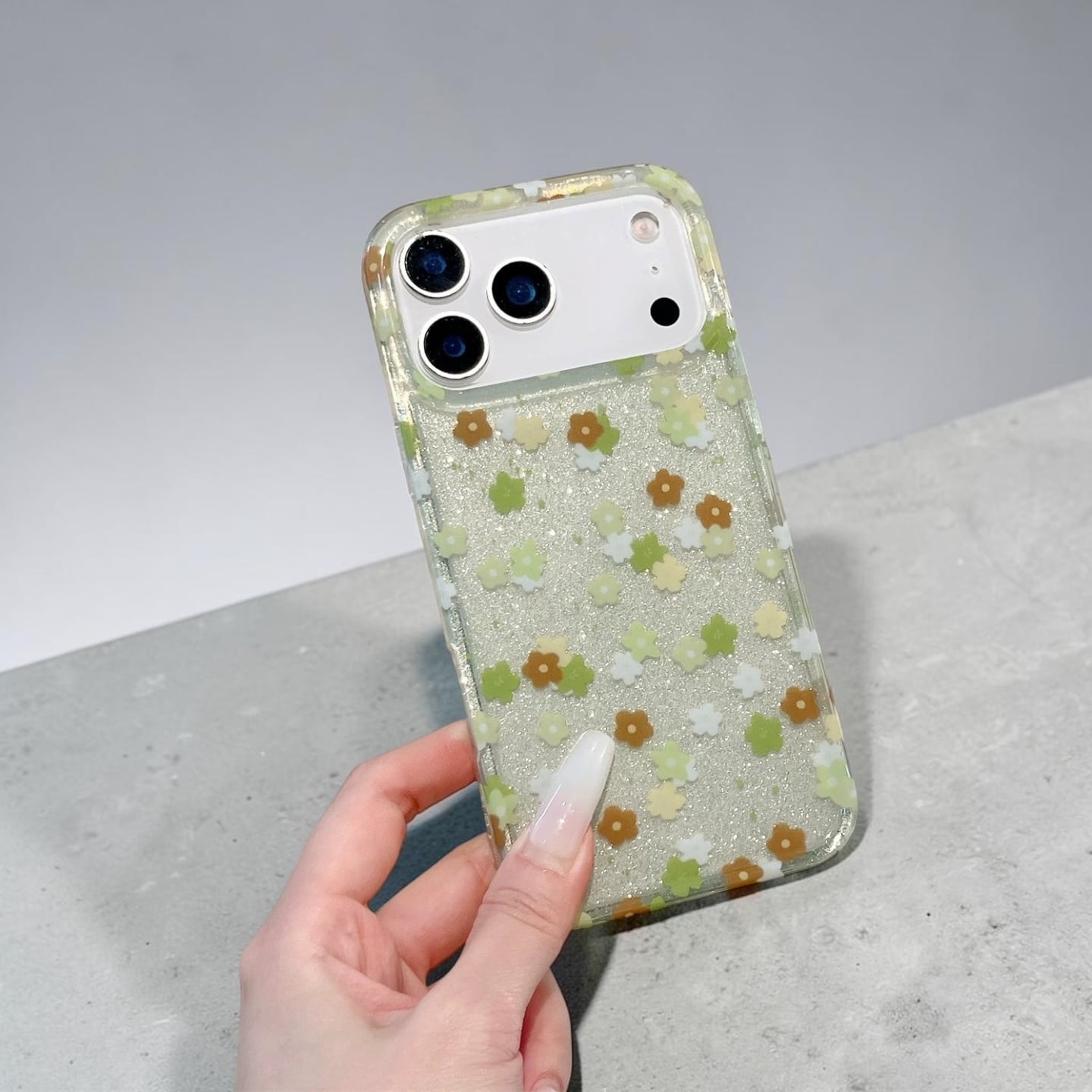 フラワー グリッター 半透明 iPhoneケース (グリーン/ピンク) | スマホケース iPhone ケース アイフォンケース | 機種 iPhone 14 15 16 17 Pro Max シリーズ