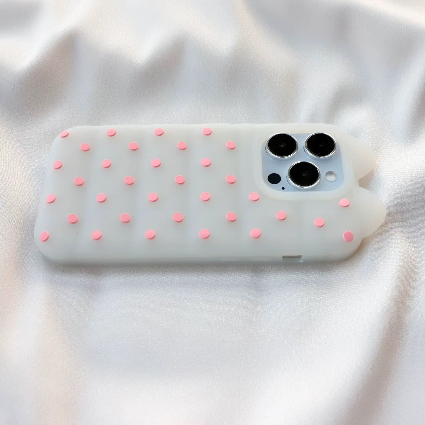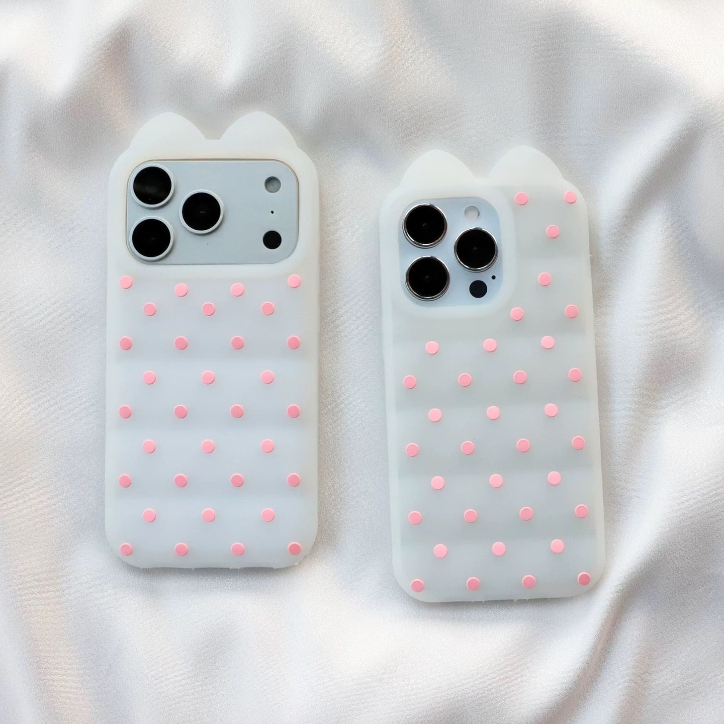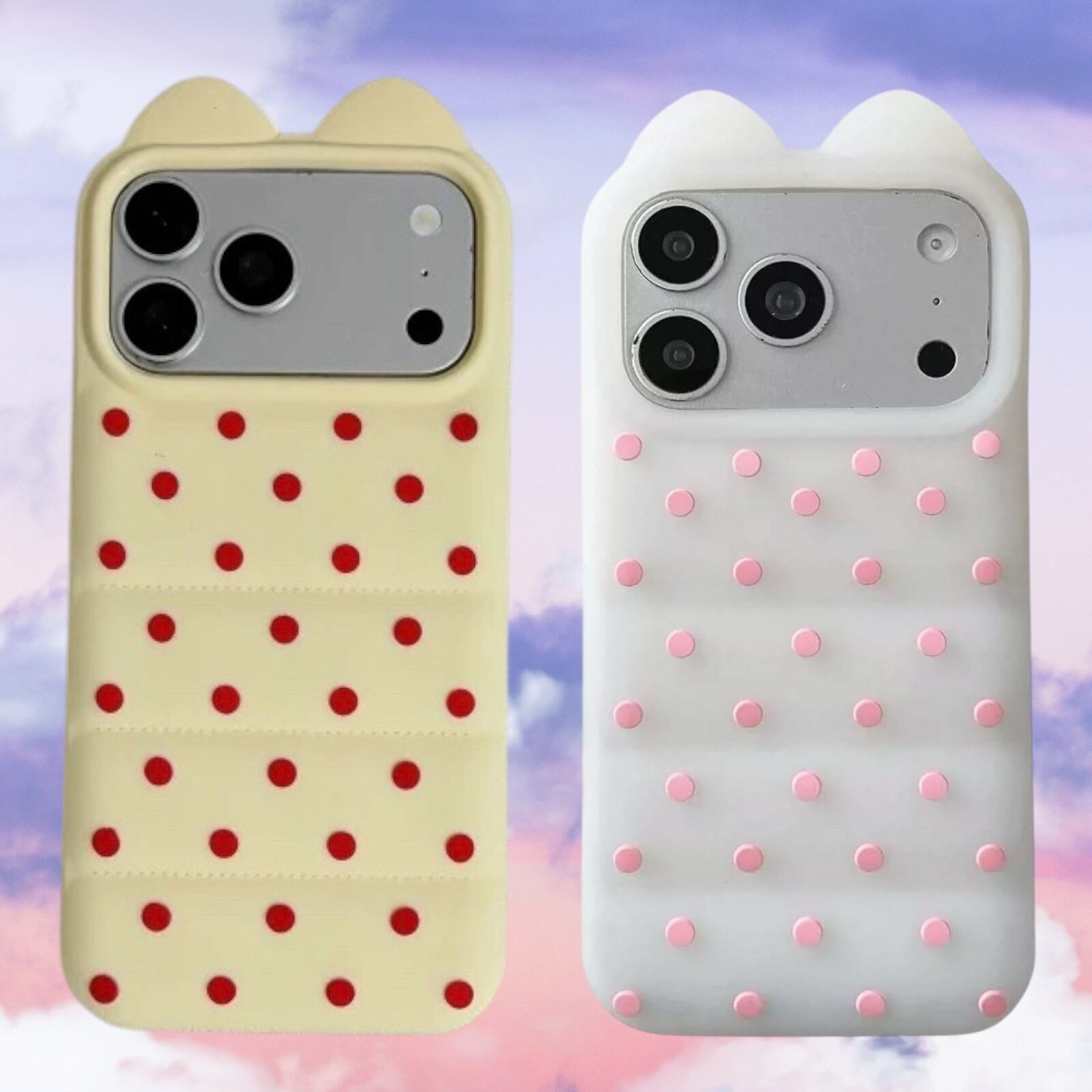 猫耳 3D ドット シリコン iPhoneケース (ホワイト/イエロー) | スマホケース iPhone ケース アイフォンケース | 機種 iPhone 13 14 15 16 17 Pro Max シリーズ