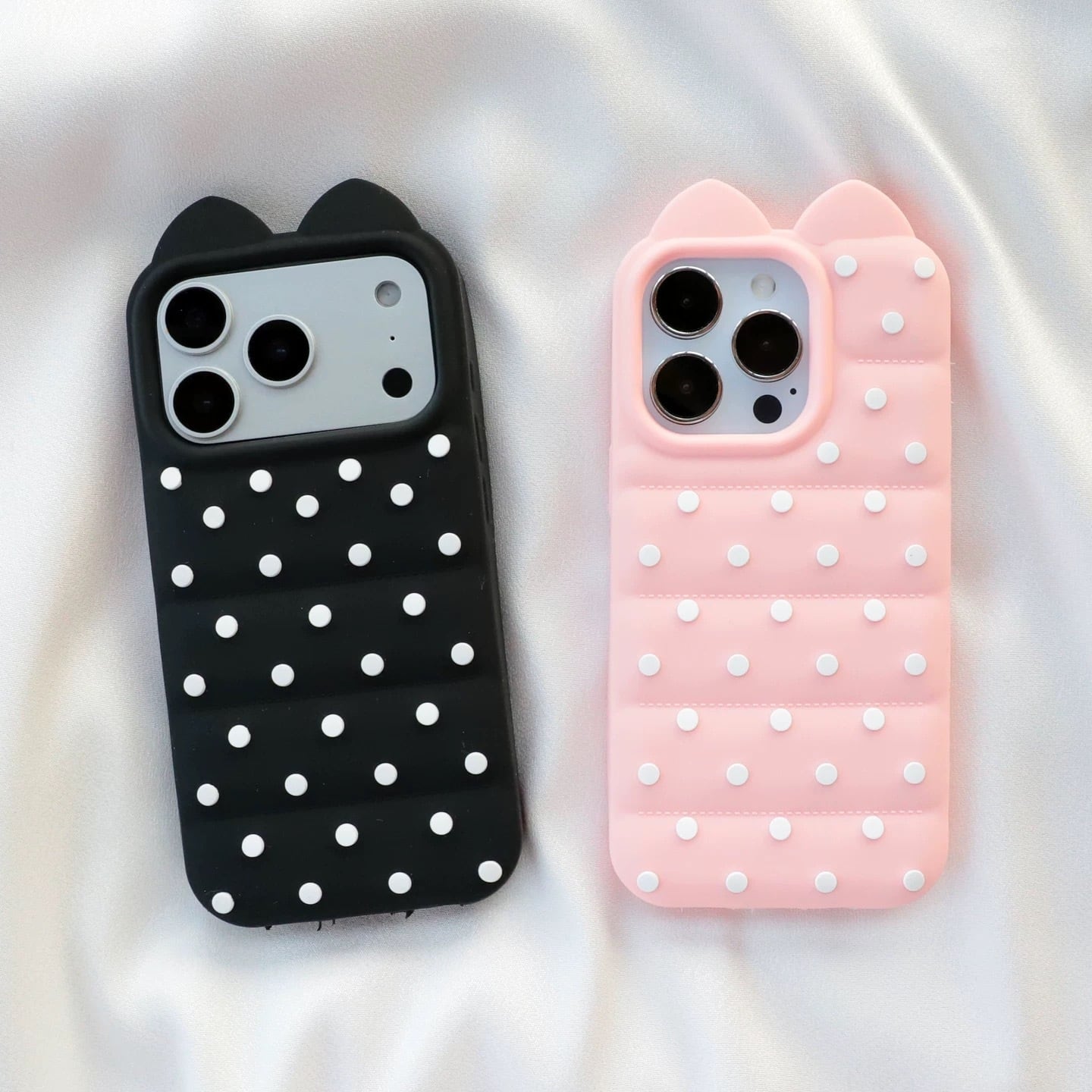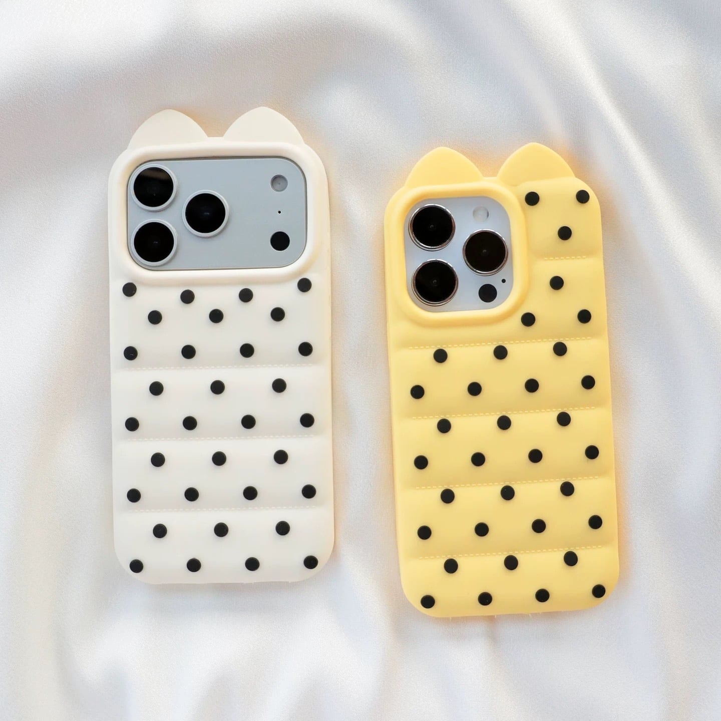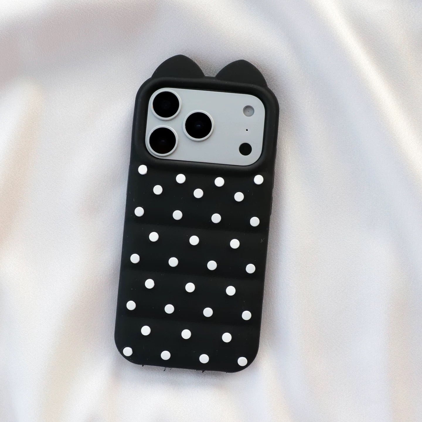 猫耳 3D ドット シリコン iPhoneケース (ホワイト/イエロー/ブラック/ピンク) | スマホケース iPhone ケース アイフォンケース | 機種 iPhone 13 14 15 16 17 Pro Max シリーズ