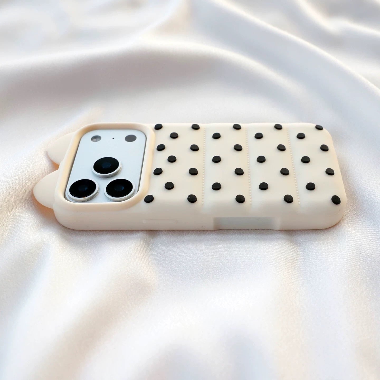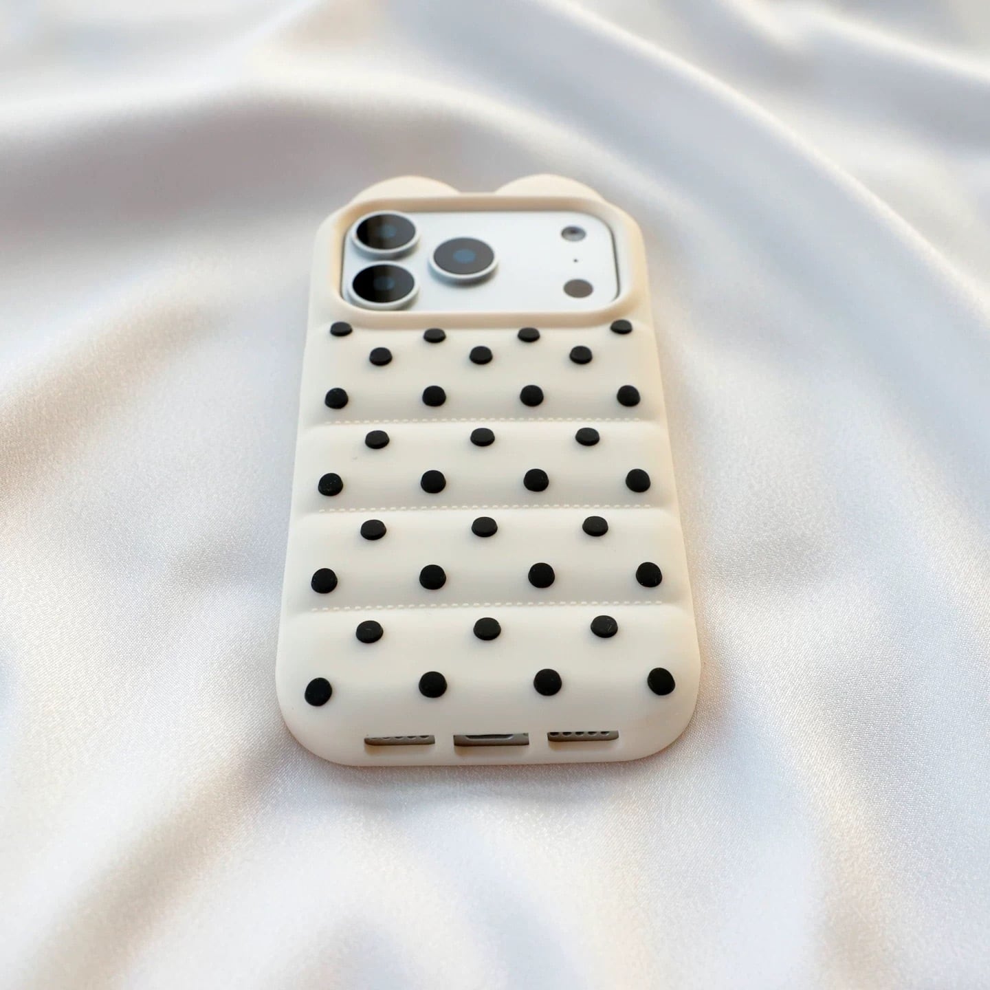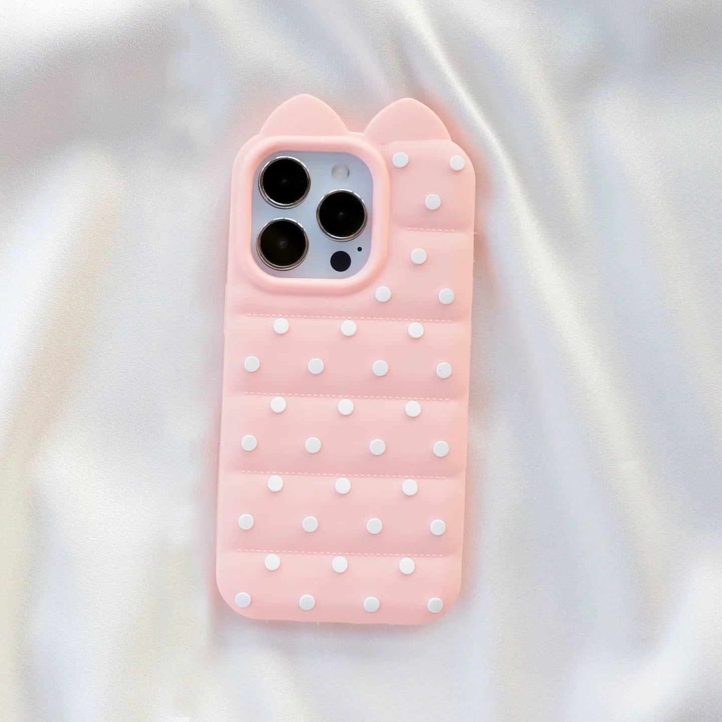 猫耳 3D ドット シリコン iPhoneケース (ホワイト/イエロー/ブラック/ピンク) | スマホケース iPhone ケース アイフォンケース | 機種 iPhone 13 14 15 16 17 Pro Max シリーズ
