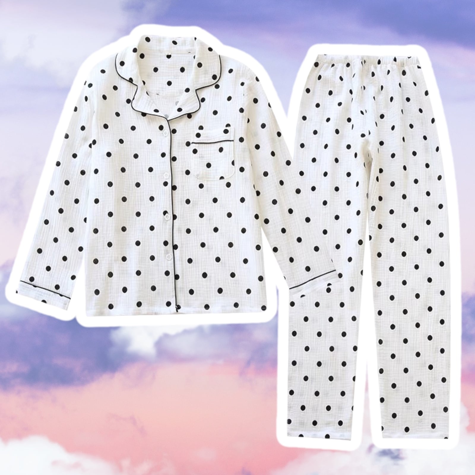 〜エレガントな黒のドット柄、ホワイトカラーのパジャマ〜
